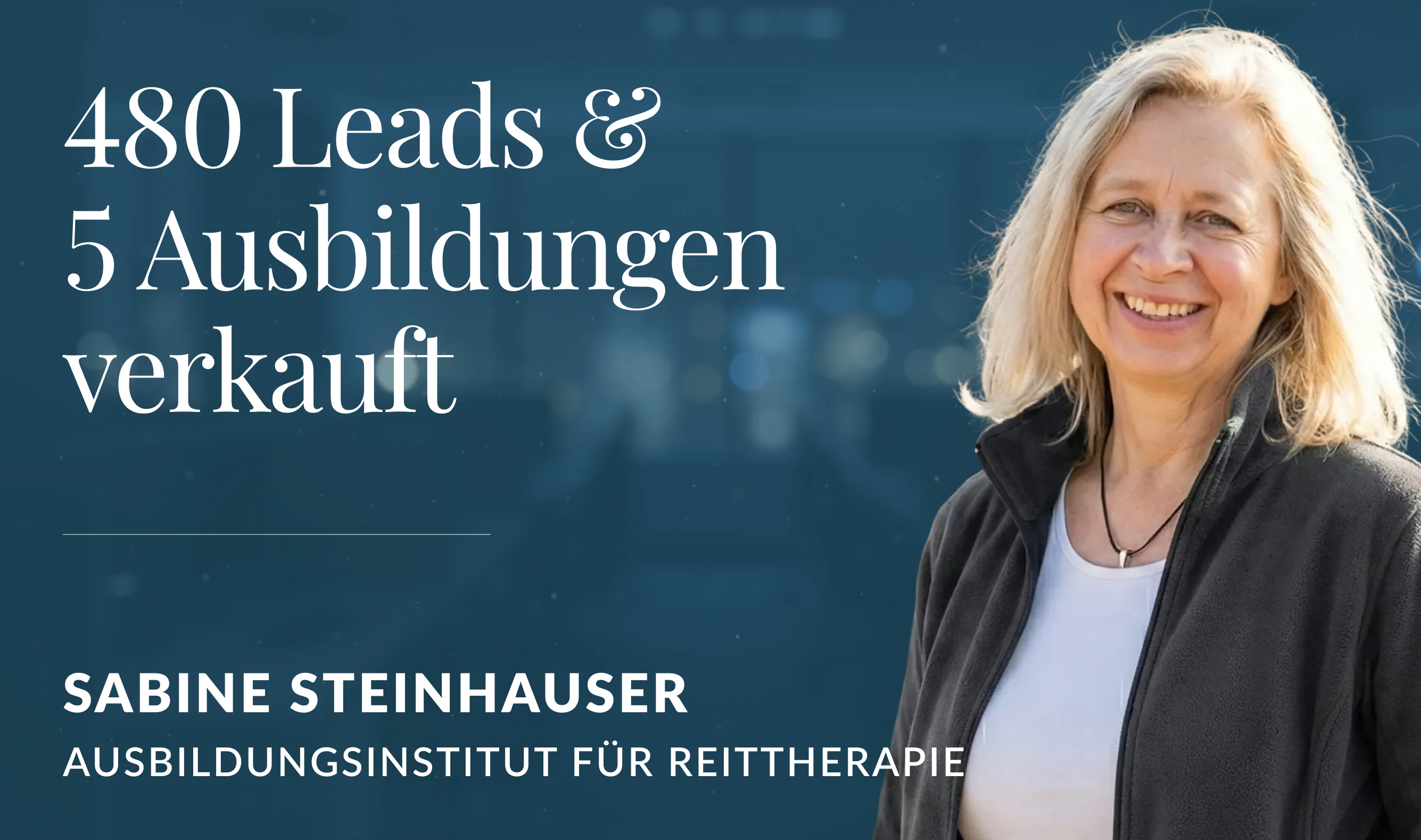 Innerhalb weniger Monate generierte sie über 480 Leads und gewann daraus direkt 5 neue Teilnehmer für ihre Ausbildungen.
