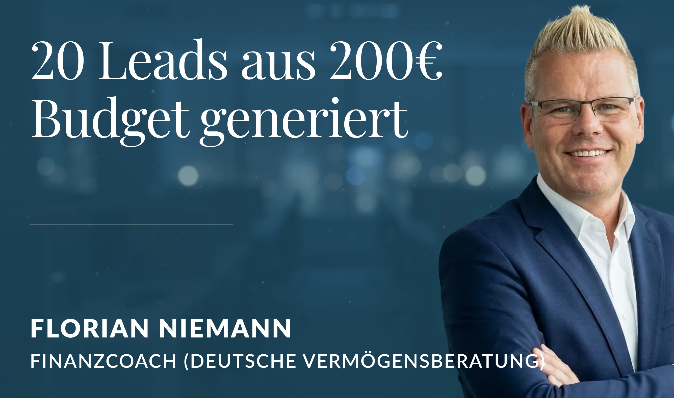 Mit nur 200 € Budget generierte er so schnell 20 Leads und 5 Termine, dass die Werbung wegen des Ansturms vorübergehend pausiert werden musste.