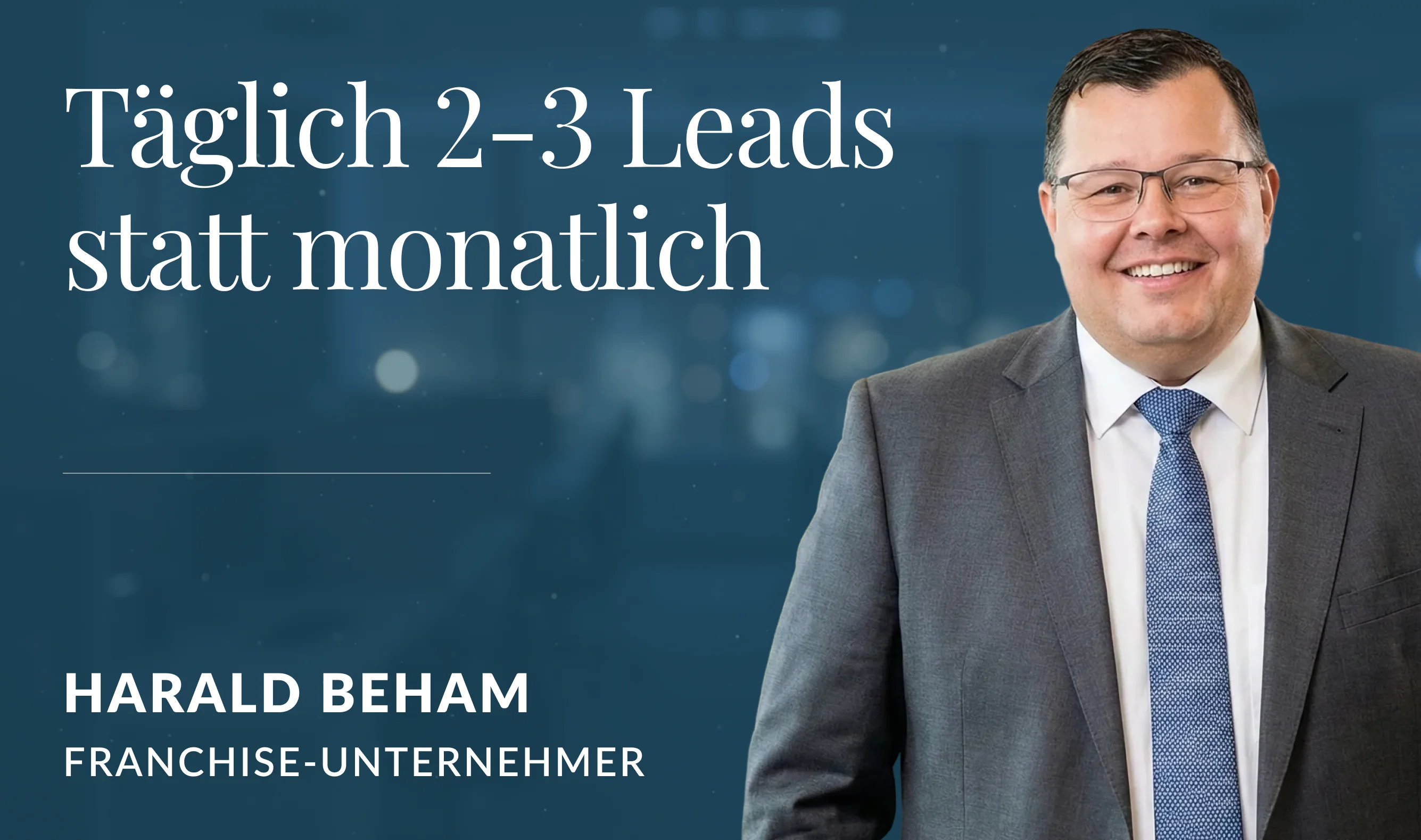 Harald wollte sein Franchise-Netzwerk erweitern, erhielt über herkömmliche Wege (Printmedien, Portale) jedoch nur mühsame 1-2 Anfragen pro Monat.