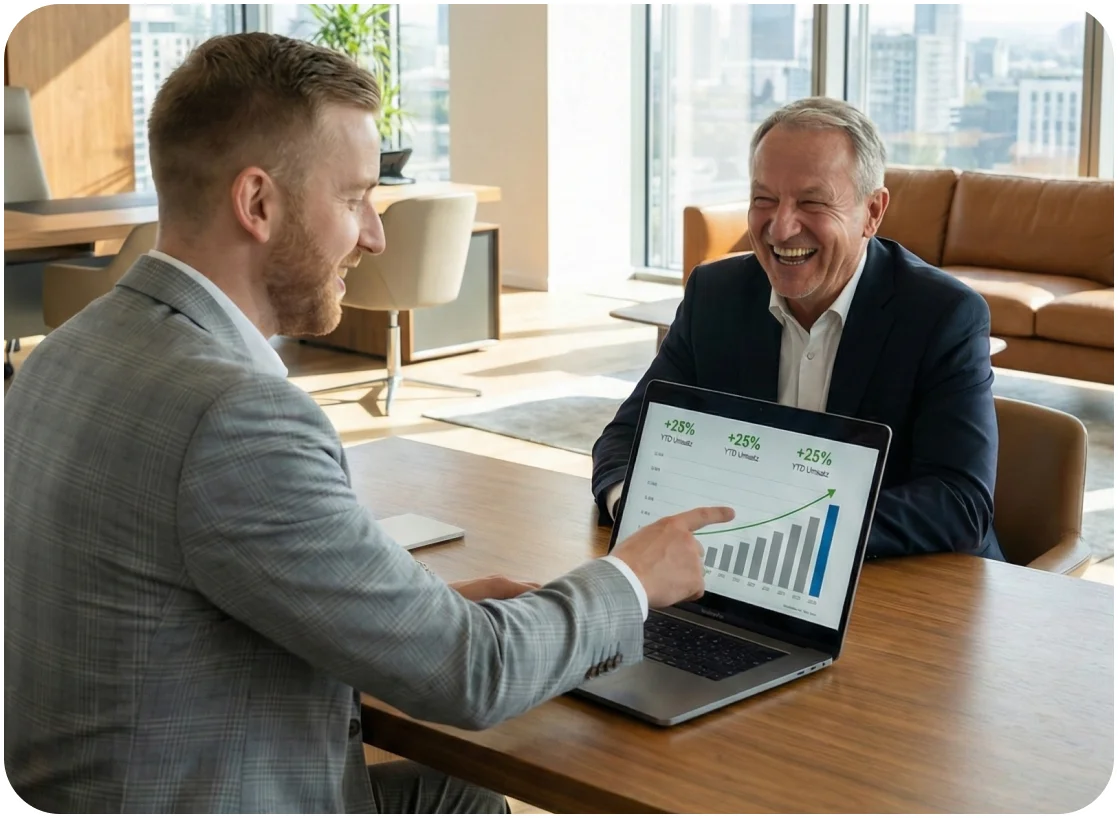 Normalerweise deckelt dein Budget für Vorkassen das Wachstumstempo. Da wir für unsere Arbeit in Vorleistung gehen, fällt dieses Limit weg. Du wächst so schnell, wie deine Delivery es zulässt.