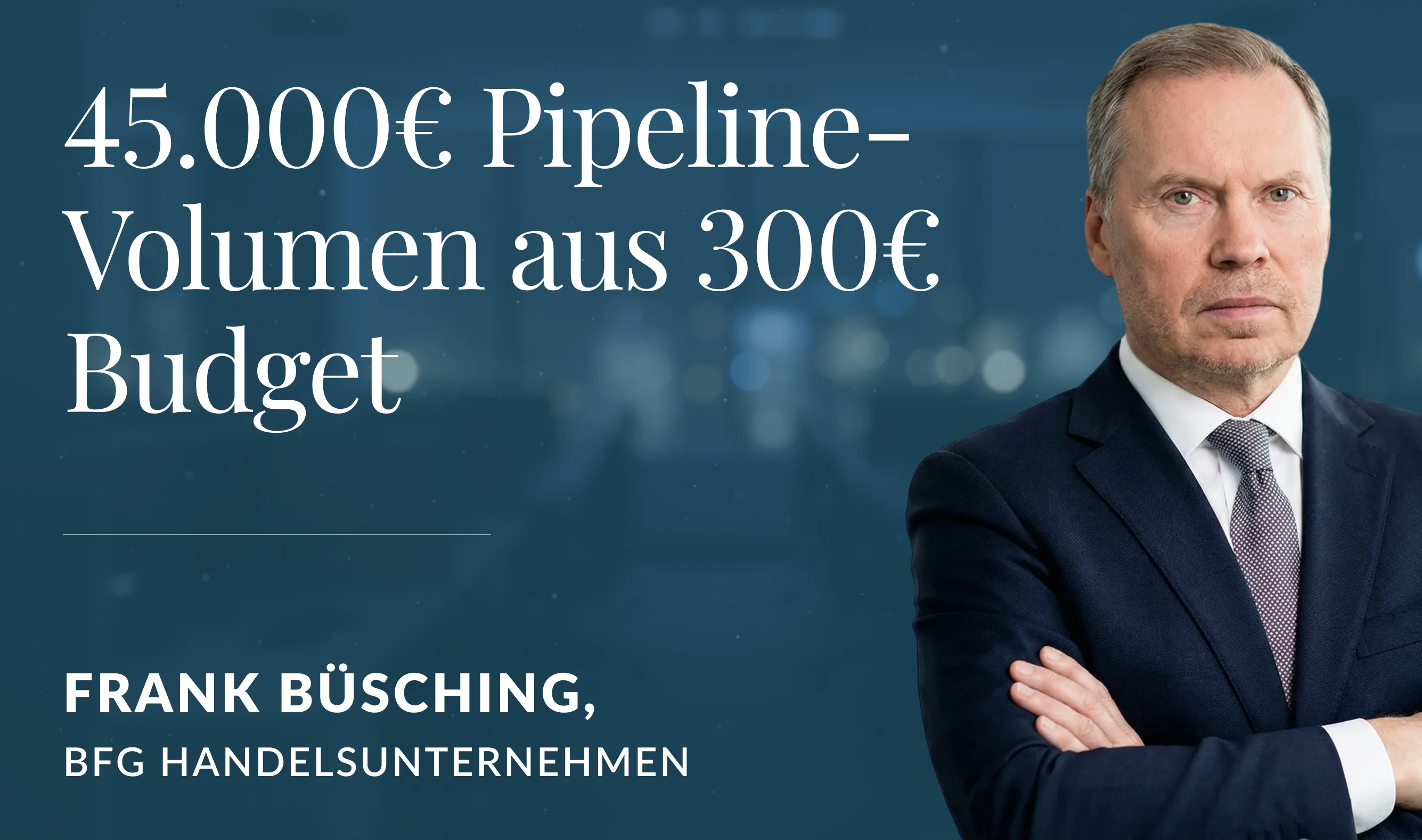 Mit nur 300 € Werbebudget generierte er innerhalb von zwei Wochen 12 Leads und eine Auftragspipeline von ca. 45.000 €.